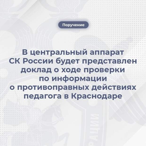 "В настоящее время образовательный процесс в классе продолжается с новым педагогом. Вопрос о возможном привлечении уволенного сотрудника к административной или уголовной ответственности остаётся в фокусе внимания правоохранительных структур", - уточнили в департаменте образования мэрии Краснодара.