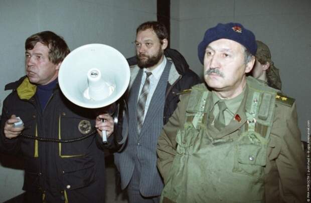 Политики Анпилов В.И., Константинов И.В и генерал Макашов А.М. во время трагических событий