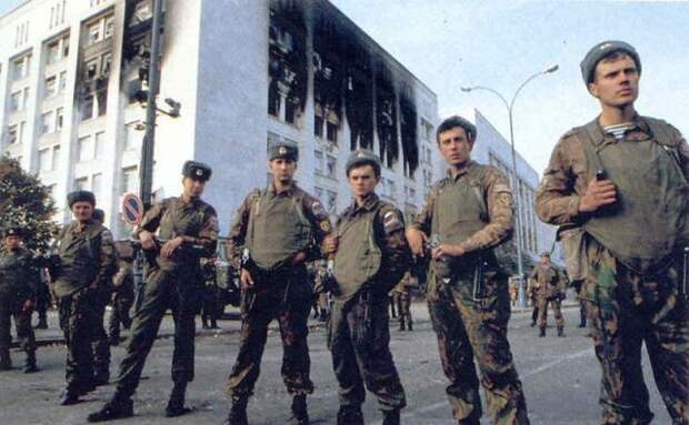 От редакции. В результате этого многочасового боя были подбиты несколько бэтээров и погибли десять человек. Погибшие были награждены высокими правительственными наградами. Даже спустя годы сам факт утренней перестрелки подразделений Министерства обороны и дивизии внутренних войск держится в строжайшем секрете. В центре столицы в течение нескольких часов министр обороны и министр внутренних дел так и не смогли скоординировать действия своих подчиненных. Оба, как вы помните, получили на грудь по "Герою России".