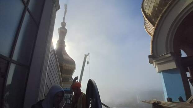 Собор пока ограждён строительным забором и недоступен для осмотра. Но для группы из Петербурга сделали исключение. По благословению настоятеля протоиерея Гавриила Агабекова мы смогли осмотреть храм, помолиться в нём и подняться на высоту главного купола, с которой открывается удивительный вид на Мариуполь.